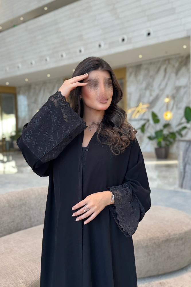 تصميم مميز وانيق مزين من الأكمام واسفل العبايه بقماش ركاما مطرز ✨