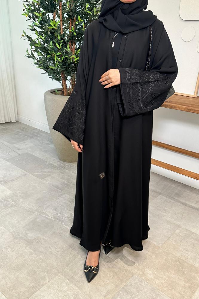 القماش : كريب انترنت باكمام تطريز يدوي فخمه ✨القصه : نص كلوشالعبايه فيها طقطق ويوجد معها طرحه مطرزه من طرف 🌷